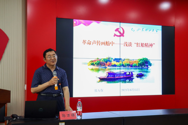 6月15日晚,我院“焦远先锋”青马培训班在12号教学楼217开展“红船精神”专题报告会。山东理工大学生命科学学院党总支书记郭万保主讲,我院团总支辅导员吕科晨担任主持人,青马培训班全体学员参加此次学习。