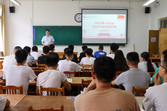 6月17日,我院研究生第一党支部在12号教学楼212教室开展党史学习教育专题党课。此次活动由支部书记张凯同志主讲,支部全体党员参加。