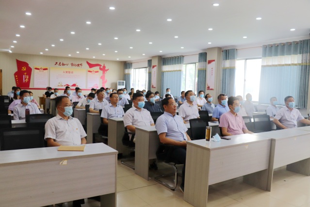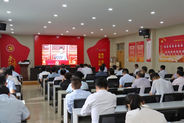 学院领导班子成员、教师党员在12号教学楼217收听收看大会实况直播