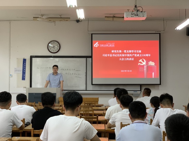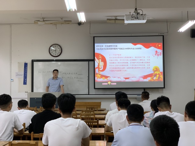 2021年7月1日下午,我院研究生第一党支部在12号教学楼210教室开展“习近平总书记在庆祝中国共产党成立100周年大会上的讲话”主题学习交流会,会议由党支部书记张凯同志主持,党支部全体党员参加。
