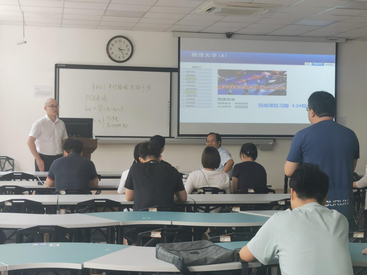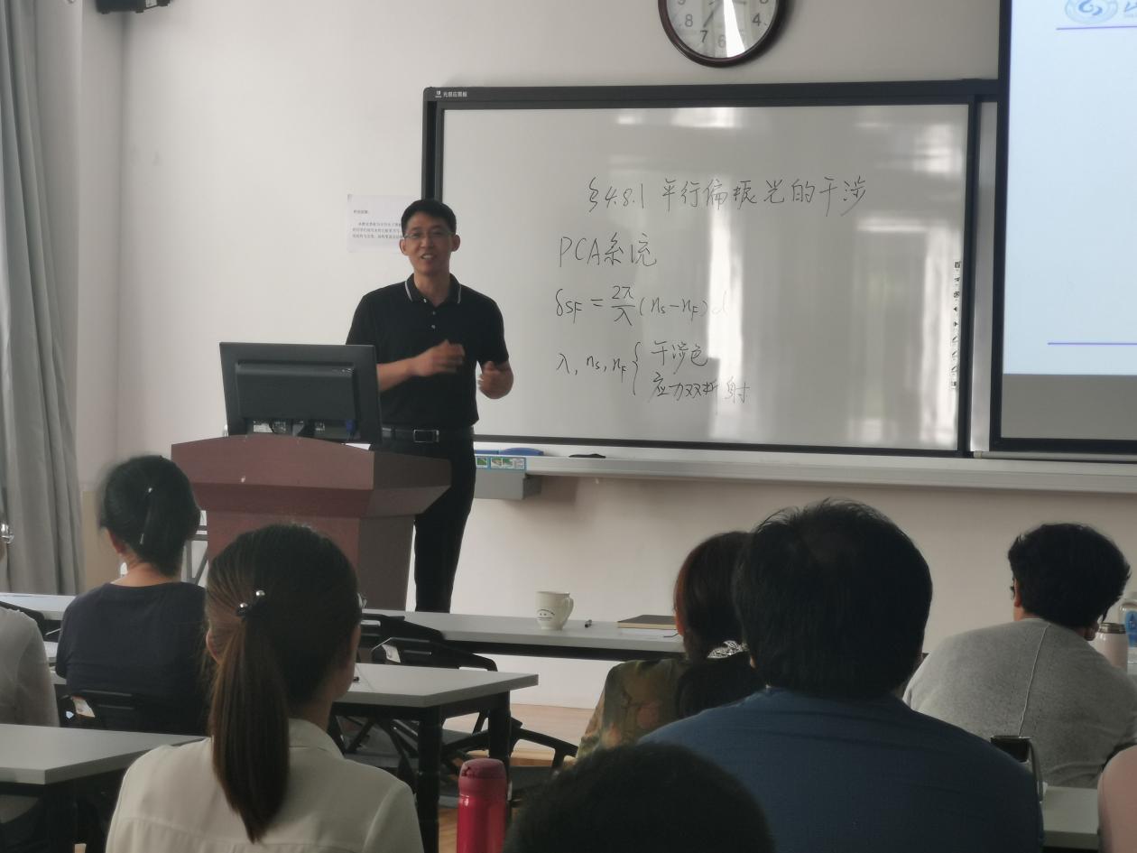 报告会上,数学与统计学院郑滨老师讲授了《高等数学》——定积分的定义,这一教学节段示范课。郑滨老师巧妙的教学设计,扎实的教学基本功,使得整个授课内容,环环相扣,浑然一体。物理与光电工程学院王本义老师讲授了《物理光学》——平行偏振光的干涉,这一教学节段示范课。通过钢化玻璃的自爆这一实例,阐述了平行偏振光的原理、平行偏振光的应用。两位教师以饱满的精神,丰富的授课内容和新颖的教学方法,为大家讲授了精彩生动的一课。