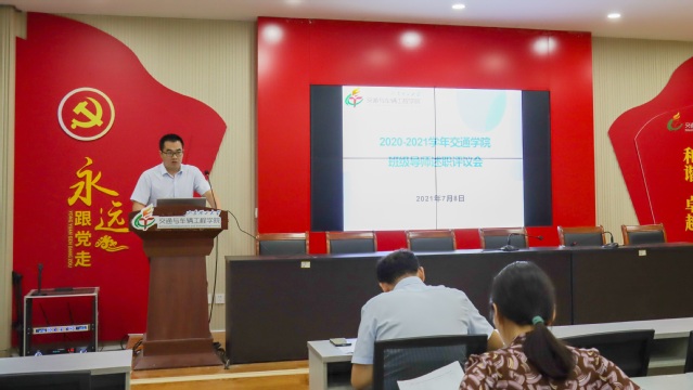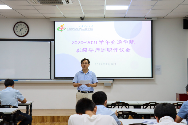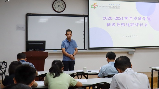 7月8日,交通学院在12号教学楼211、217教室召开2020-2021学年班级导师述职评议会。学院党委书记褚兆勇、党委副书记蔡清吉、副院长刚宪约、教师代表参加评议会,2019、2020级共30名班级导师进行现场述职。
