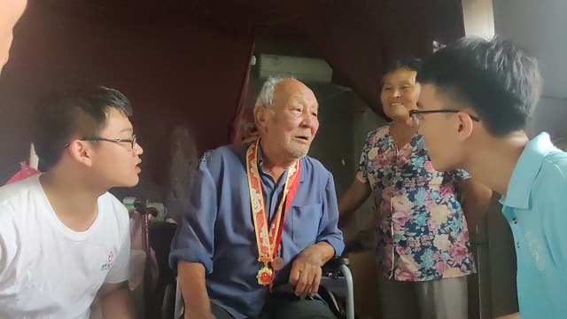 7月29日上午,“圆梦·红色育人”社会实践团在济宁市泗水县柘沟镇柘沟三村拜访参与过抗美援朝的老党员朱玉和。此次调研由实践团调研组组长徐子雨带领,实践团成员路传宁、刘子扬、王贺共同参与。