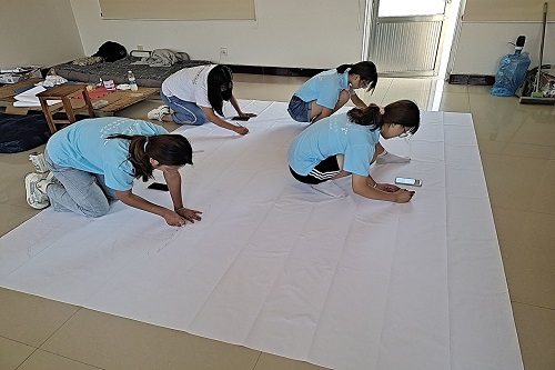 7月31日,交通与车辆工程学院“鳌鳌”反哺调研实践团开始民宿改造第九天。进行盘炕,粉刷墙壁,缠麻绳,绘制“十岁遇百岁,童心跟党走”主题活动画布内容,制作灯罩等工作。