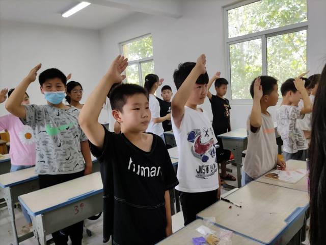 中国少年先锋队是中国少年儿童的群众性组织,少先队中独特的文化礼仪是少先队和其他组织的区别标志。如今,少先队这支队伍越来越被重视,为促进孩子们对少先队员身份的认同感,激发孩子们情感的共鸣,培养良好文明礼仪习惯,山东理工大学“星河长明”实践团于7月30日在鄄城县董口镇宋楼村小荷学堂开展少先队员礼仪知识专题教育。