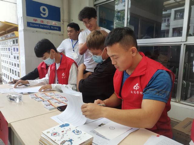 为确保常态化疫情防控下新学期本科生管理工作有序进行,按照学校秋季学期疫情防控工作方案要求,交通与车辆工程学院新生于2021年9月5日到校报到,同时交通与车辆工程学院第四党支部支部书记周燕燕老师带领支部学生党员进行志愿服务活动,于学生9号公寓和8号公寓前为报道的新生提供核对身份信息、收取录取通知书、发放校园卡、新生报到单盖章和搬运行李的服务。