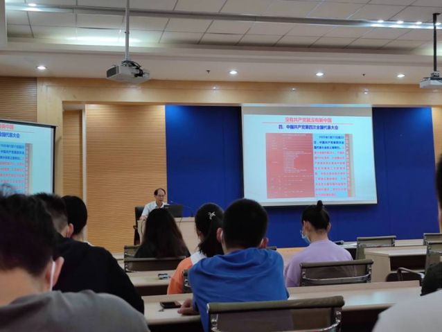 9月23日下午,我院学生第三党支部于图书馆负一层报告厅听取党史学习教育报告,蔡清吉同志主持会议,赵立煜老师讲述,全体党员参加。