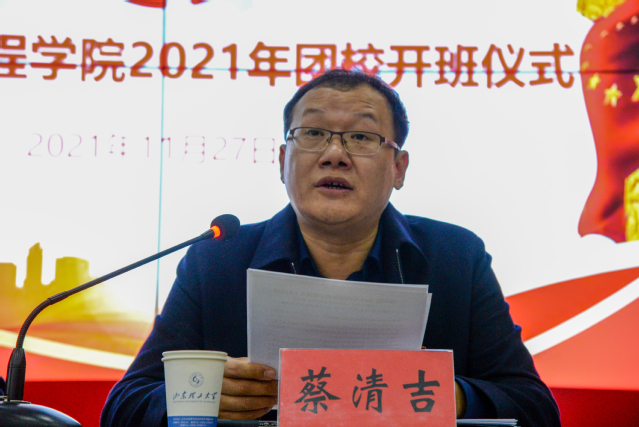 蔡清吉代表学院党委对新一期团校开班表示热烈祝贺,他作了动员讲话,鼓励学员们要善于学思践悟、端正学习态度,在学有所思、学有所获、学有所用上下功夫;要常思职责之所在、常思工作方法,聚焦工作重点,切实发挥思想引领和模范带头作用,争做“五有”人才的表率,在为同学服务中完善自我;要敢担当善作为,充分发挥专长,把所知、所学、所长与实际工作结合起来,努力把自己锻造成栋梁之才。