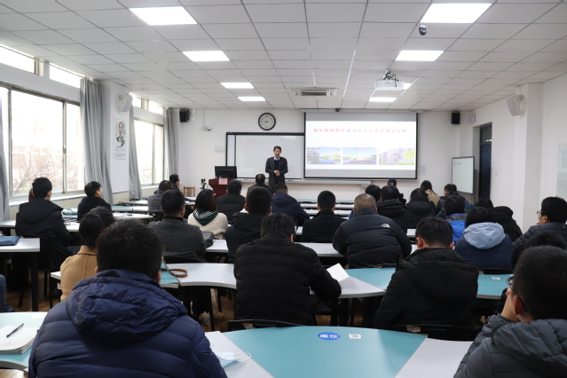 李涛从合作发展处简介、新时代的新要求、身边榜样的示范、学校推进服务社会举措、青年教师服务社会的建议5个方面作了精彩报告。他总结了合作发展处主要做的三件事:校地合作、校企合作和校友合作,核心是争取社会资源,进而服务于教学科研、服务于师生成长、服务于学校发展。他指出新时代推动社会发展最为重要的两支力量就是企业家和科学家,两种力量拧在一起,必将迸发无限动力。他列举了身边的优秀榜样,指出工科知名专家的成长之路就是与企业紧密合作之路。针对学校如何推进服务社会,他提出要大力推进与淄博市融合发展,实施“一人双岗”计划,推进“人的融合”,与政府企业共建研究平台。最后,李涛对青年教师如何服务社会提出了十条建议,并指出服务社会的根本就是服务自己。