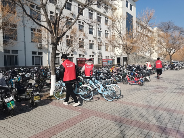 为增强支部党员的奉献意识和责任意识,切实响应为师生办实事办好事的号召。11月25日,我院学生第二党支部在12号教学楼前公共区域摆放自行车。
