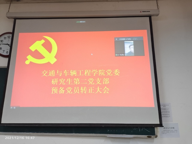 12月16日下午四点半,交通与车辆学院研究生第二党支部在12号教学楼212教室召开中共预备党员转正大会,会议由支部书记崔建强主持。