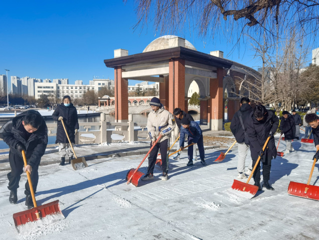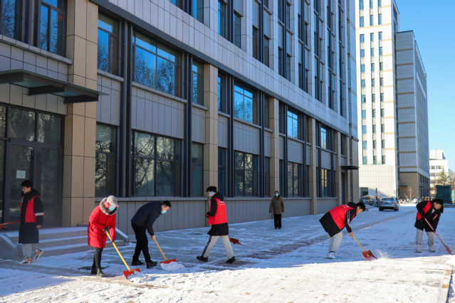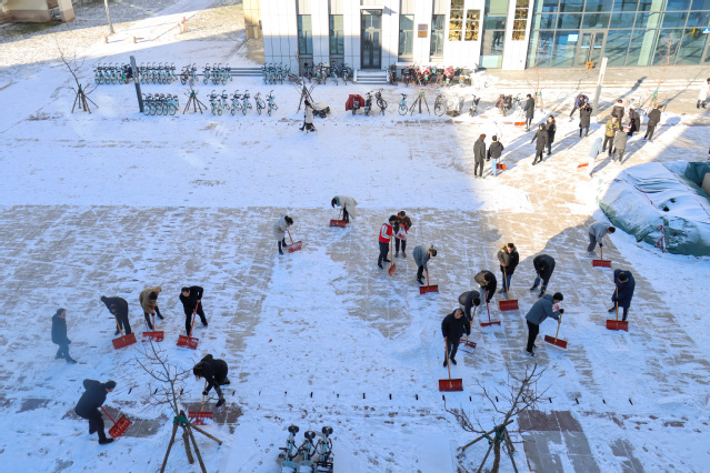 先锋在行动丨再现师生齐上阵,扫雪除冰保畅通!