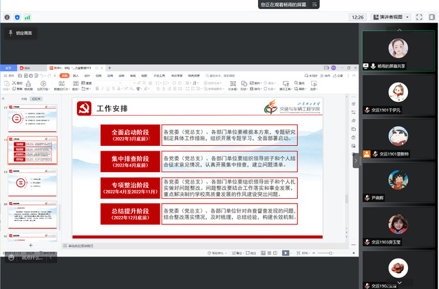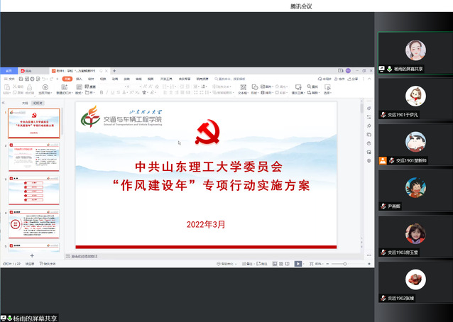 接着,杨雨同志结合学校的作风建设方案解读《交通与车辆工程学院“作风建设年”专项行动工作方案》,分阶段、分时间做好相关工作。