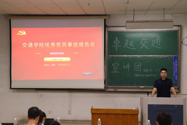 为了帮助同学们解决在学习和科技创新上遇到的迷茫与困惑,并对新阶段的学业发展有一个良好合理的规划。5月21日晚,我院学生第一党支部在4号教学楼101教室召开交通优秀党员事迹报告会,三位18级优秀党员以及全体大二级车辆工程专业学生参加。将高年级学生党员在科技创新方面取得的优异成绩和宝贵经验进行总结,以班会宣讲的形式向低年级的同学分享交流。