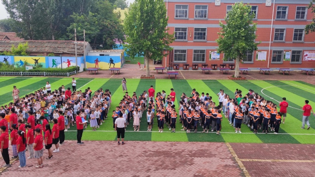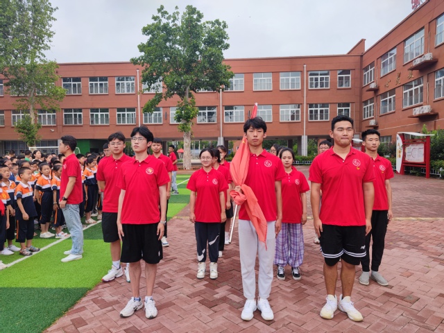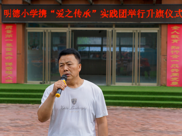 7月11日清晨,“爱之传承”实践团携明德小学在体育场举行升旗仪式,明德小学校长孟洪喜,实践团全体成员,明德小学全体学生参加此次升旗仪式,仪式由实践团成员王俊思主持。