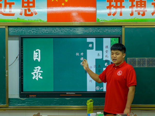 在教学的过程中,“爱之传承”的队员们结合自身的专业知识、发挥各自优势,在传统课堂讲授的基础上,结合实践操作、寓教于乐等多种方法对当地学生进行辅导,让孩子们在快乐中学习,在学习中成长。在绘画艺术课中,以“回望冬奥”为主题,郭其正带领一年级的同学用画笔勾勒冬奥会和冬残奥会的吉祥物“冰墩墩”“雪容融”。郭其正说:“想以画吉祥物的方式让小朋友以另外一种视角了解国家的赛事运动。”在礼貌课堂上,谷德帅以课堂礼貌、家庭礼貌、公共场所礼貌、升旗礼仪四个模块向三年级同学展示了博大精深的礼仪文化,从衣食住行四个方面为同学们树立正确的榜样,“凡人之所以为人者,礼仪也。”
