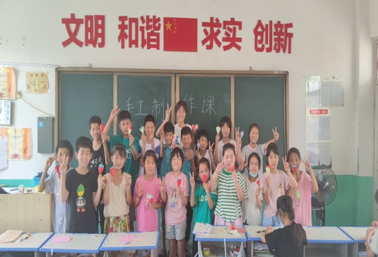 接着,在同学们的期盼中,迎来了文体手工课的第二次开展。在第一次文体手工课的基础下,同学们对于手工草莓折纸的剩余部分操作得游刃有余。在实践团成员的带领下,完整而精美的作品逐渐展现在同学们的课桌上,一颗颗“草莓”,也带给同学们成功的喜悦与甜美的心情。