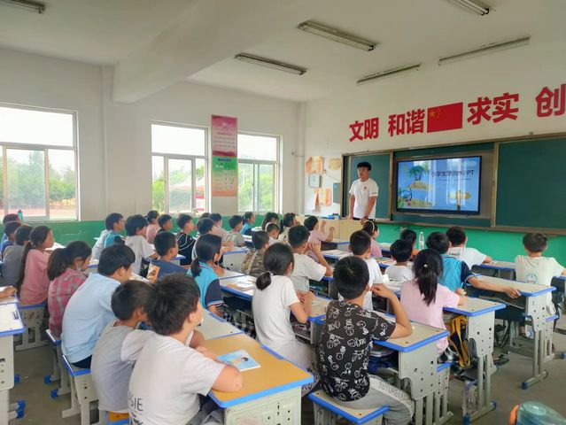 7月14日,山东理工大学交通与车辆工程学院“星河长明实践团”在菏泽市鄄城县旧城镇旧城完小继续开展“小荷学堂”相关课程教学活动。本次开展“小荷学堂”相关课程共分为三个部分,分别为社会常识课、文体手工课以及安全自护课。