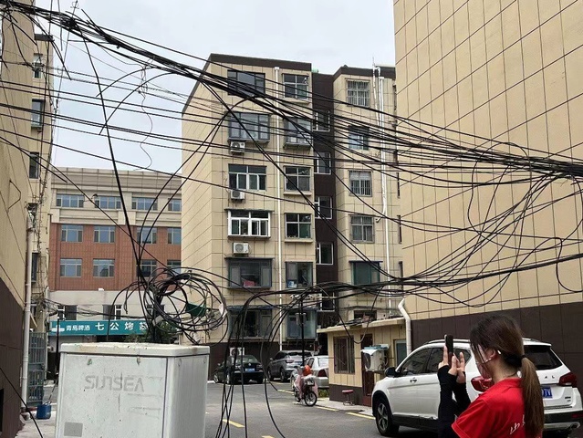 相关队员在齐林家园社区进行调研,实践团队长孙理祖带领团队成员就消防通道的隐患是否与限高架和电线老化有关这个问题进行了积极讨论,讨论发现,齐林家园社区电线低垂严重、电线高度安排不合理问题严重,实践团初步推断电线老化严重是造成消防安全事故的一大因素。