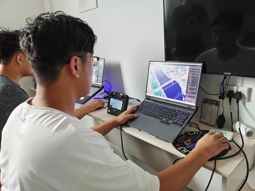 上午,实践团前往大桥附近,勘测地形后选择平坦地区安放相关设备,随后开始组装无人机经纬M300RTK,装备禅思H20镜头。飞手赵晓鹏开启地面软件站,软件站根据已有的五龙河大桥三维模型自主规划无人机巡检路线,得到巡航无人机所需要的目标飞行区域、飞行轨迹和飞行任务点,并自动将飞行路径上传到巡航无人机。