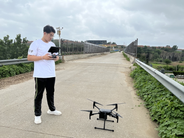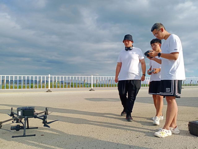 8月3日,为推进乡村振兴,山东理工大学创飞科技实践团在山东省莱阳市穴坊镇进行道路检测项目,团队成员通过操纵无人机设备对五龙河大桥桥面进行道路检测。