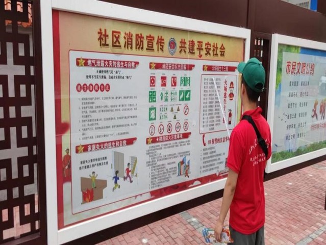 每检查一处,实践团成员都认真查看安全检查记录和日常消防监督记录,叮嘱负责人务必做好高温消防安全防范工作,建议责任人做好消防安全和用电安全工作,坚决杜绝消防安全事故发生。检查走访期间,实践团成员和物业积极向群众宣传消防安全、平安建设等知识,切实做到及时查漏补缺,消防安全不留盲区、不留死角。