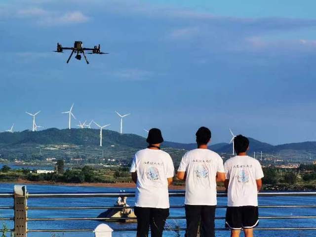在穴坊镇政府宣传科科长李文杰的带领下,实践团又来到了五龙河大桥。刘昊坤操控无人机Mavic air2对五龙河大桥进行空域排查,确保正式航拍的安全性。期间环境风速较大,Mavic air2凭借5级抗风性能顺利完成排查工作。随后孙舒鹏组装M300RTK并起飞,操控无人机对五龙河大桥进行直飞、侧飞和环绕等镜头拍摄,多角度、全方位展现五龙河大桥之美。