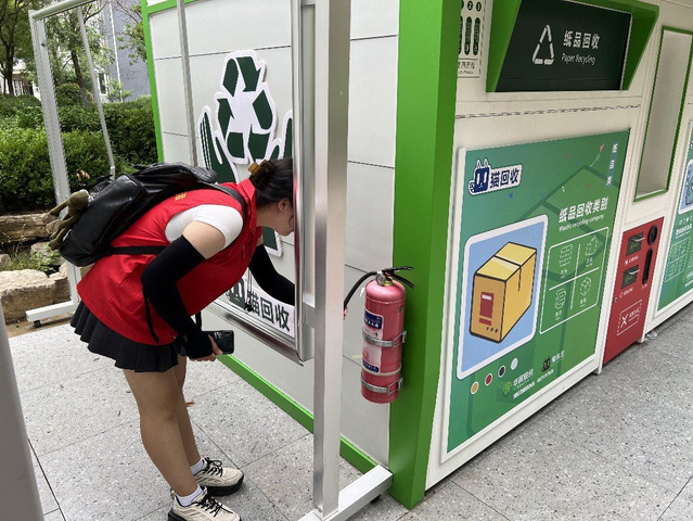 本次检查对小区五个单元进行了抽样检查,检查内容包括消防安全制度、消防车通道、疏散通道、安全出口是否通畅,室内消火栓、疏散指示标志、应急照明、灭火器是否完好有效等。检查过程中,实践团成员发现小区存在“灭火器压力不够,瓶体损伤,消防箱箱门损坏”等细节问题并责令物业及时整改。