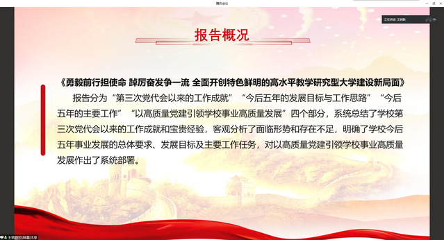 活动中,王轶群同志领学了《学习贯彻学校第四次党代会精神彰显新时代青年担当》;中国共产党山东理工大学第四次代表大会于2022年9月13日至14日胜利召开,王轶群同志通过中国共产党山东理工大学第四次代表大会概况、党委工作报告、纪委工作报告三部分内容向我们详细讲解了深入学习宣传贯彻学校第四次党代会精神是全校当前和今后一个时期的重要政治任务,关系学校工作全局,关系学校事业长远发展,关系学校全面开创特色鲜明的高水平教学研究型大学建设新局面的重要意义。