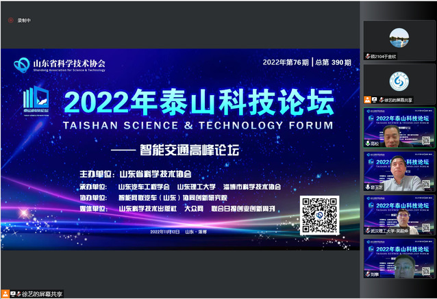 11月12日,由我校共同承办的第390期“2022年泰山科技论坛——智能交通高峰论坛”在线上举办。本次论坛的主题是“智能交通·聚势向未来”。来自全省的智能交通及智能网联汽车领域的相关专家学者、我校部分教师、科研院所的研究人员、科技爱好者等300余人参加此次论坛活动。论坛由山东汽车工程学会理事长、我校交通与车辆工程学院院长高松主持。