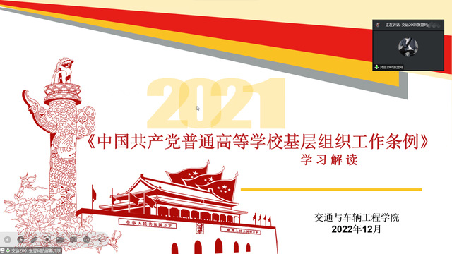2022年12月8日,我院学生第二党支部于腾讯会议线上开展第十六周双周理论学习活动。会议由党支部书记范晶晶主持,支部全体党员参加。