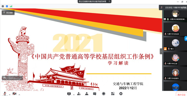 12月8日,我院学生第一党支部于腾讯会议线上开展双周政治理论学习活动,此次会议由吕科晨同志主持,张雪娇和崔津旭领学,支部党员全体参加。