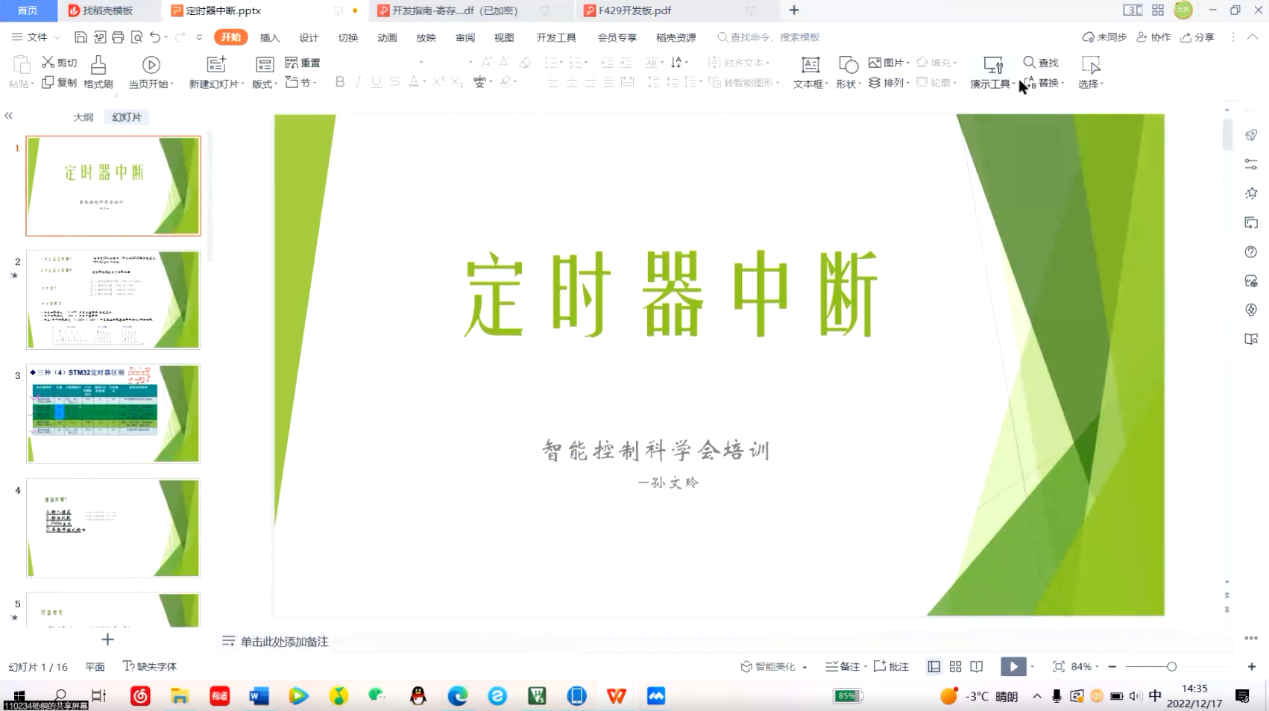 2022年12月17日,智能控制科学会在线上召开第四次会员培训会。这次会议由杨桐进行讲解PWM实验,旨在对定时器中断有更加深刻的了解,精进大家的技术,丰富大家的知识。