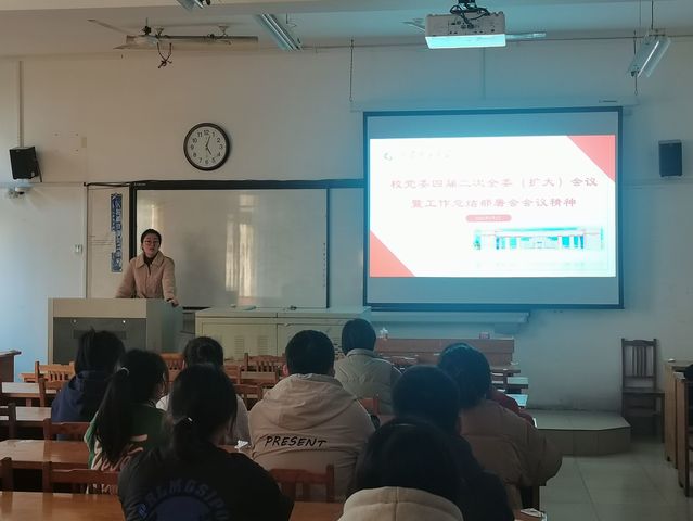 预备党员转正大会后,学生第二党支部开展双周政治理论学习,杨雨同志领学了党委四届二次全委(扩大)会议暨工作总结部署会有关内容,深入学习贯彻落实党的二十大精神,传达2023年全省教育工作会议精神,全面总结部署校党委、校行政各项工作。会议提出,2023年为学校“开拓进取年”。她带领全体党员对校党委书记胡兴禹、校长李玉霞的讲话进行深刻学习领会,对2022年工作进行回顾并对2023年主要工作任务进行展望,号召各位党员要踔厉奋发、勇毅前行,不断进取。