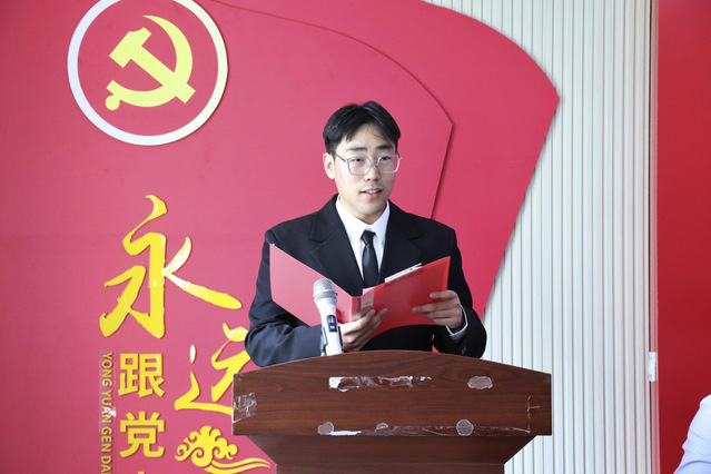学院培训班代表孟翔涵发言,他号召同学们要仰望星空,坚定信念立大志;脚踏实地,奋力担当勇作为;勤劳务实,认真负责担大任。