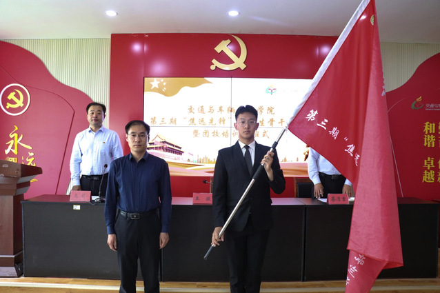 王振为第三期“焦远先锋”大学生骨干培训班授旗。