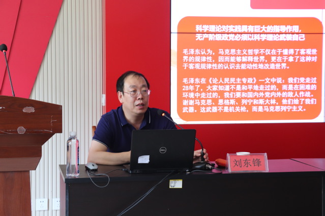 刘东锋作了题为“深刻把握‘两个确立’ 自觉践行‘两个维护’”的辅导报告,他分别从理论维度、历史维度、现实维度、未来维度等4个维度对如何深刻理解和把握“两个确立”的本质内涵、决定性意义和实践要求,自觉践行“两个维护”进行了生动解读和系统阐释。他提到,全体党员同志要坚持不懈用习近平新时代中国特色社会主义思想凝心聚魂,更加坚定拥护“两个确立”、坚决做到“两个维护”,坚定不移把“两个确立”真正转化为坚决做到“两个维护”的政治自觉、思想自觉、行动自觉。