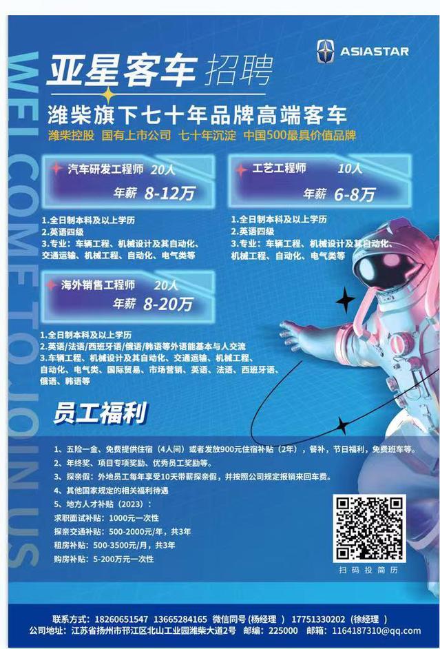 潍柴亚星客车招聘(汽车类)