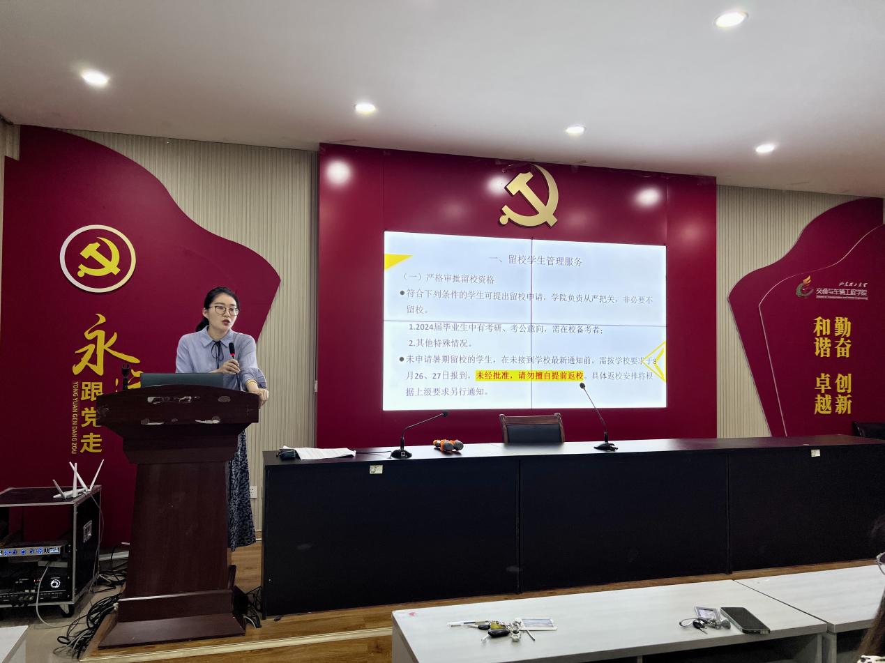 会议伊始,杨雨从暑期留校管理要求等方面进行强调,要求留校同学要明确留校要求和措施,严格遵守学校、学院的暑期管理规定。