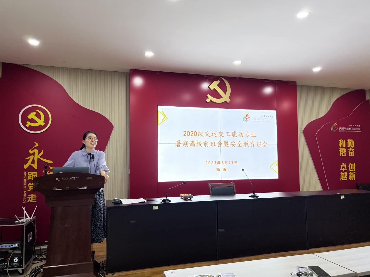 暑期在即,为切实做好2023年暑期离校工作,6月27日晚,我院于12号教学楼217室开展20级交运交工能动专业暑假离校前班会暨安全教育班会,会议由辅导员杨雨主持,20级交运交工能动专业全体学生参加。