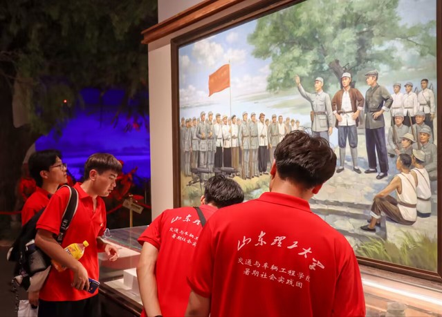接着,实践团成员正式进入铁道游击队纪念馆。一进门,铁道游击队先烈们的塑像就矗立眼前,他们的塑像栩栩如生,那英勇豪迈,坚定不移的英姿震撼了在场所有人。实践团成员游览学习了有关于铁道游击队的历史事迹和精神。馆场内,实践团看到了革命先烈们冒着敌人们的炮火共赴国难,千万爱国将士浴血奋战,视死如归。各界人民万众一心,同仇敌忾,用生命和鲜血谱写的一首感天动地的反抗外来侵略的壮丽史诗。这让实践团成员对红色精神有了更深刻的领悟。铁道游击队的精神对现代青年具有深远影响,他们的爱国主义精神鼓励青年为了祖国繁荣富强而奋斗;他们的团队协作精神鼓励青年面对挑战,齐心协力;他们的创新精神鼓励青年在学习和工作中勇于探索,敢于创新;他们的艰苦奋斗鼓励青年在绝境中保持积极向上的态度。
