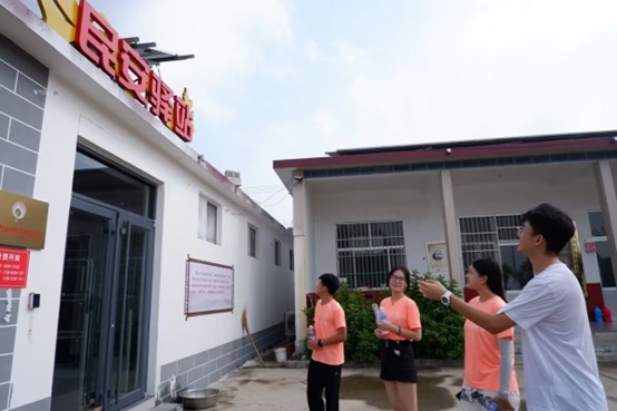 身体力行勤浇灌,支教花开别样红。支教活动开展前,实践团成员积极与洼子村妇联负责人沟通交流,了解洼子村暑假学生受教育情况。经过与村委干部沟通,支教活动将在洼子村民安驿站书房内开展,实践团成员在洼子村青年代表带领下参观民安驿站内部设施,了解当地受教育情况。