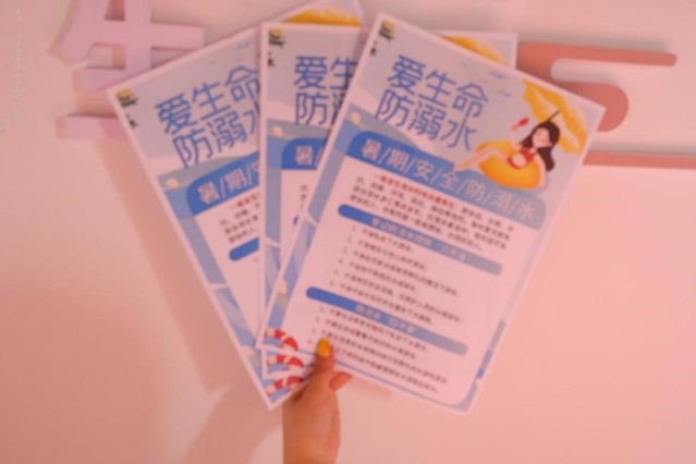 7月9日上午,“向阳花开”实践团成员设计制作“防溺水”主题海报,于山东省泰安市新泰市汶南镇内进行防溺水知识宣传。夏季各地天气渐热,溺水事故频发,洼子村临近水库,较易发生溺水事故。