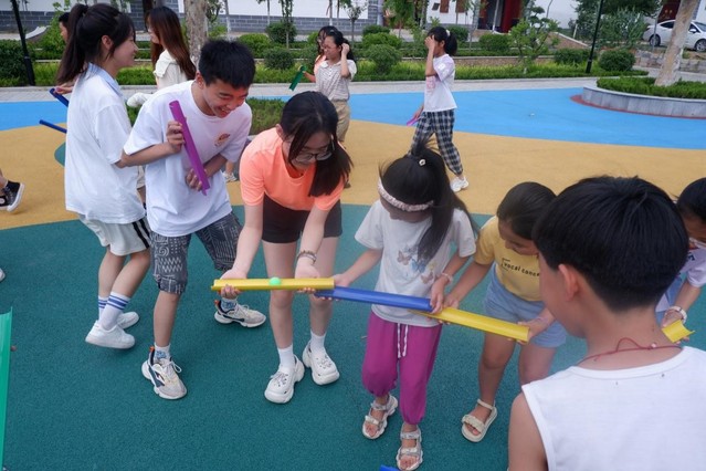 比赛过程中,实践团成员与洼子村的同学们经多次尝试,熟练掌握活动技巧,组内成员积极交流沟通、团结合作,游戏氛围热烈。实践团成员们积极引导同学们遇到困难及时更换策略,共同努力,体现出团队默契和同学们坚持不懈的精神。