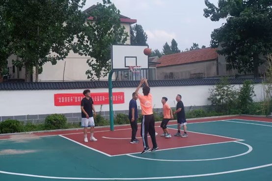 与此同时,侯明杰带领球馆两位球员同实践团成员以及洼子村学生开展了激烈的篮球联赛。比赛开始前,由侯明杰与实践团成员一起为篮筐换上全新篮网,象征全新开始。