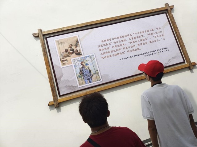 焦裕禄故居是一座青砖白瓦的平方,故居内设立了陈列室,陈列了焦裕禄生前使用过的生活用品,使用过的农具、家具等物品,显得十分的朴素,也彰显出了共产党人艰苦奋斗,廉洁奉公的优秀品质。故居旁的焦裕禄故事墙展向我们讲述了焦裕禄中青年时期的一些事迹,以及当地居民的生活面貌,一张张的黑白照片,让我们更加深刻的认识到那个年代人们是如何改变农村穷苦面貌的。