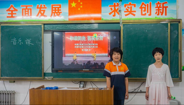 音乐课上,为进一步加强爱国教育,使学生继承光荣传统、弘扬民族精神,鼓励学生从小树立为祖国建设贡献青春远大理想,实践团成员带领学生高唱《我和我的祖国》,在感受音乐美感同时,加深学生对祖国认识与热爱,增强民族自豪感,更坚定学生拳拳报国之心,引导他们树立正确的人生观、价值观、世界观。