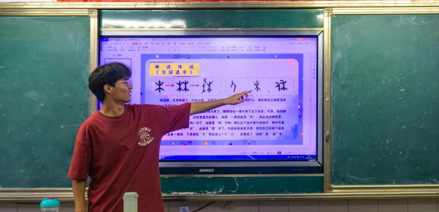 随后,杨召珍又以图片的形式,生动形象的描述文字的转变。汉字文化,博大精深。学生了解到汉字是人们有意识地、主动地治理汉字的过程。经过一段时间的演变后,汉字变的规范化、统一化,总体趋势是由繁到简。对于文字的转变,学生提出各种问题,展开激烈的的讨论,同时对学习、了解与书写文字产生极大的好奇。