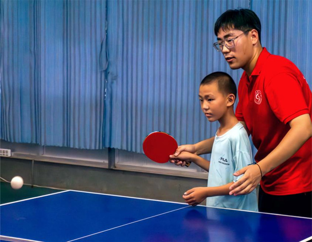 7月份,山东理工大学交通与车辆工程学院“爱之传承”暑期社会实践团来到德州市武城县明德小学进行支教活动。7月17日,实践团成员组织开展乒乓球训练课,对不同阶段学生作针对性训练,为明德小学注入一股新鲜血脉,不断创新“体教融合”教育模式,通过对学生严谨细致管理、系统科学训练,努力推动明德小学乒乓球事业发展。