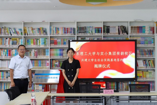 7月19日,在微山县荷韵小学阅览室举行了山东理工大学交通与车辆工程学院与荷韵小学共建大学生社会实践基地签约揭牌仪式。参加此次揭牌仪式的有山东理工大学学生工作部副部长李萍,交通与车辆工程学院党委副书记蔡清吉,中国共产主义青年团微山县委员会书记王冉,微山县实验小学东校区党支部书记张明利,微山县实验小学教育集团党总支书记、校长徐四海,微山县实验小学教育集团荷韵校区执行校长王凯等领导和“圆梦”暑期社会实践团代表。